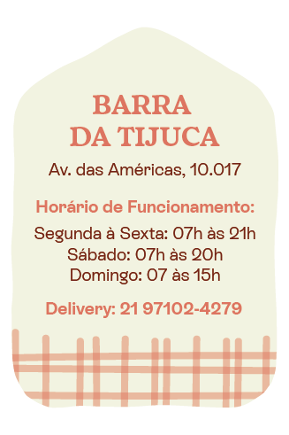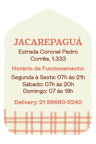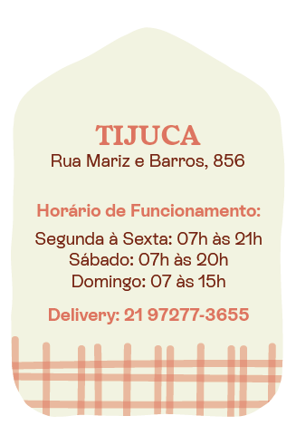 * Exceto loja Mariz e Barros ** Disponível apenas na loja de Jacarepaguá